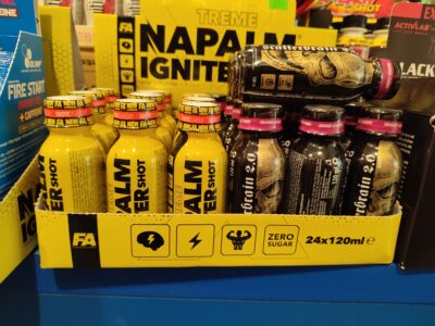 - Napoje, batony białkowe